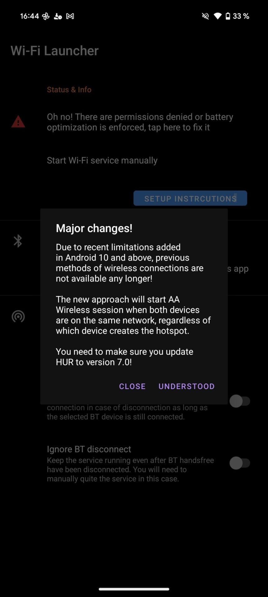 Celle-ci explique que de gros changements techniques ont été apportés depuis Android 10. Appuyez sur le bouton Understood.