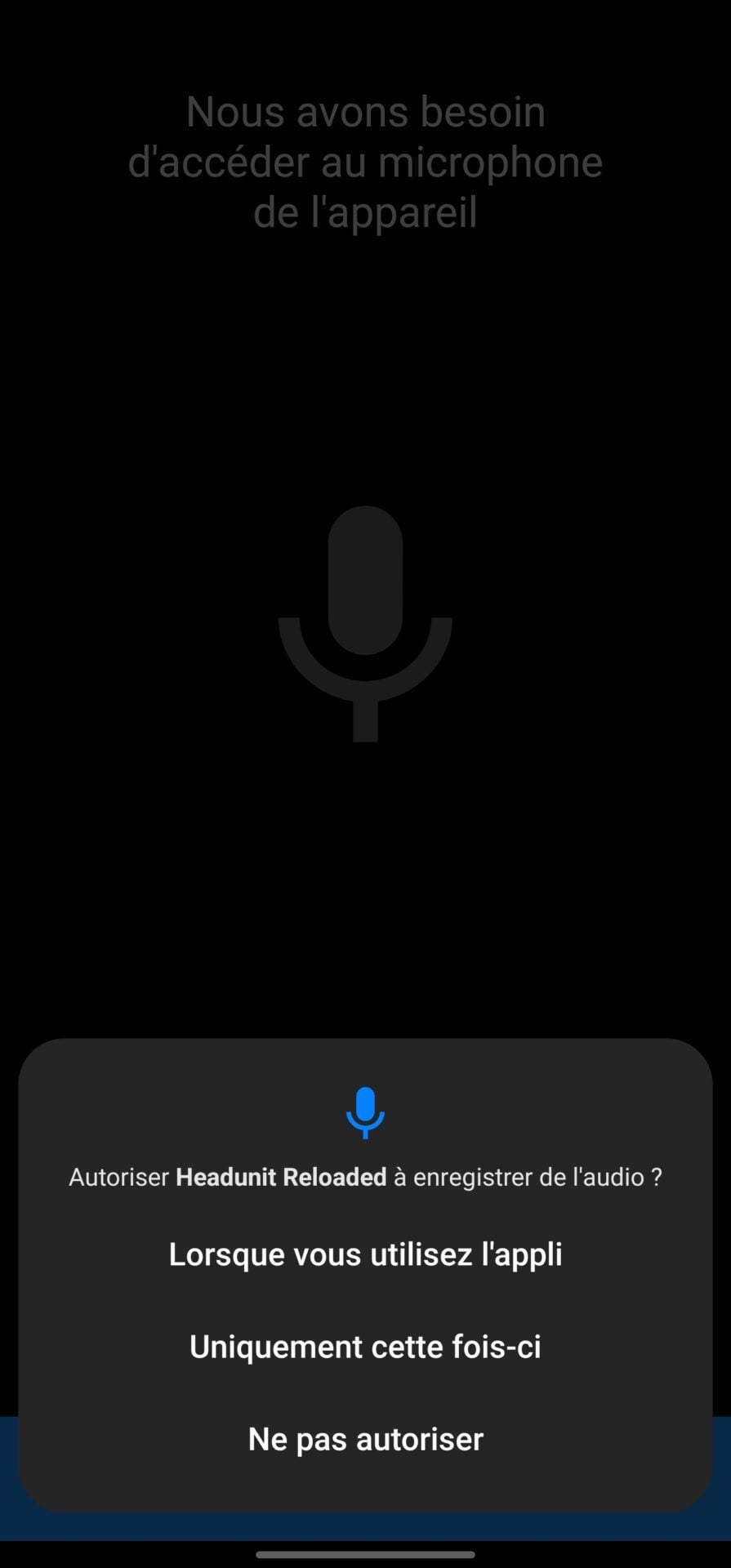 Avant que la page principale de l’application ne s’affiche, Headunit Reloaded va vous demander une autre autorisation : celle de désactiver la superposition de l’écran. Cette autorisation est nécessaire pour que l’application puisse rester affichée à l’écran en cas d’appel entrant.Dans la fenêtre Modifier les paramètres système qui s’affiche, appuyez sur le bouton OK.