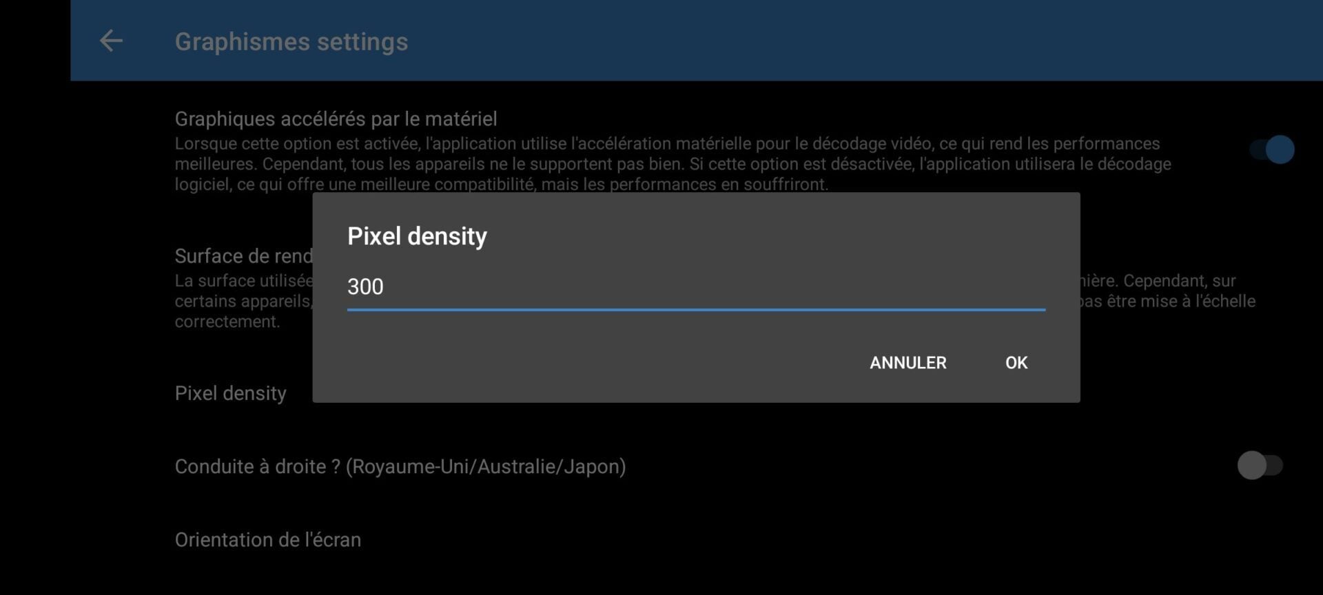 Ouvrez de nouveau Headunit Reloaded, rendez-vous dans Settings, puis dans Graphismes, entrez dans le menu Pixel Density.