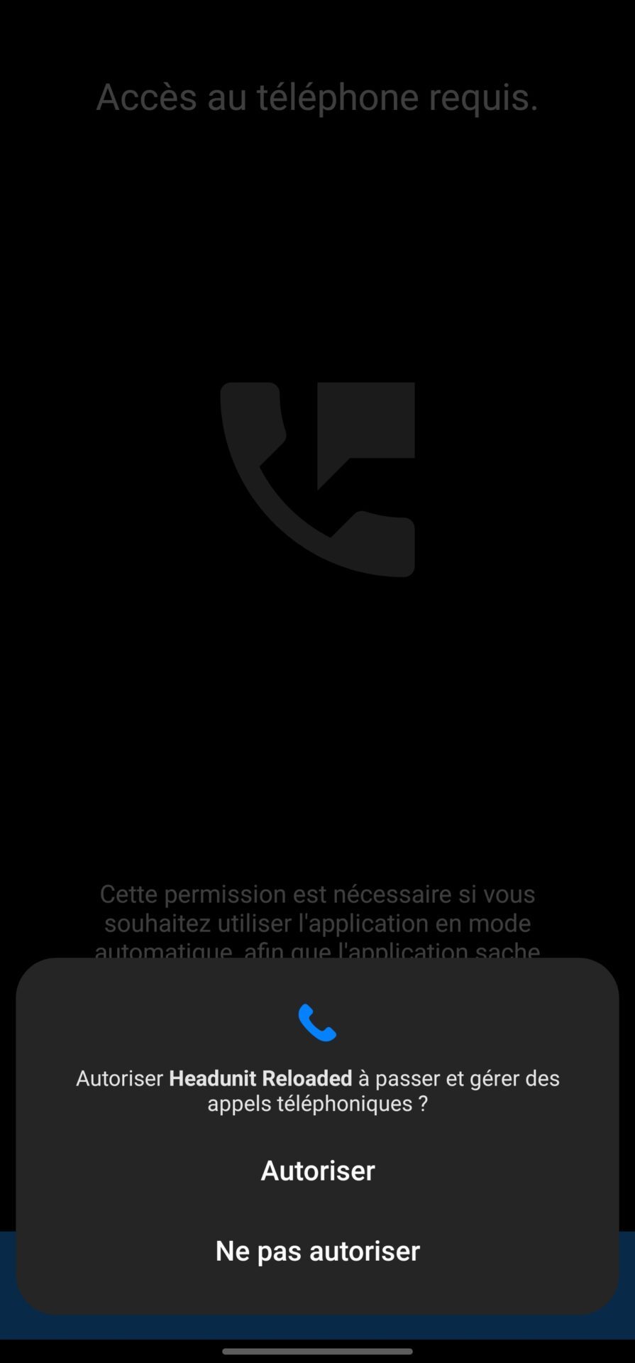 Pour transformer votre smarpthone Android en unité Android Auto, ouvrez simplement l’application Headunit Reloaded sur votre téléphone et accordez toutes les autorisations demandées par l’application (si cela n’est pas déjà fait).