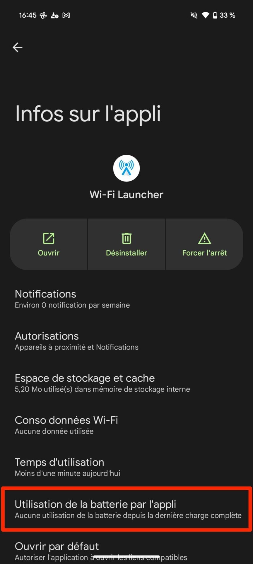 Quittez l’application et faites un appui long sur son icône pour accéder aux Infos sur l’appli et choisissez de Forcer l’arrêt de celle-ci.