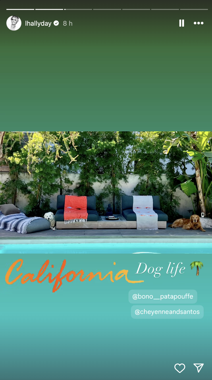 Mais après ce joli moment, cette dernière a ensuite retrouvé ses filles, Jade et Joy (qui étaient accompagnées d’un de leurs amis), ainsi que son amie Yaël Abrot autour d’un déjeuner. Après une petite virée en voiture, la petite bande s’est réunie dans un célèbre restaurant californien, dans lequel elle a pu déguster des mets 100 % vegan. Et pour finir cette journée en beauté, la veuve de Johnny Hallyday s’est ressourcée en forêt, en promenant sa chienne Cheyenne.